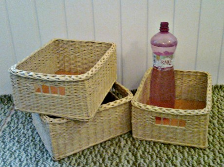 Súprava troch regálových košov vo svetlej prírodnej farbe