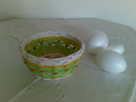 Zeleno-žltý, oranžové korálky, dolný priemer 12,5, horný 8, výška 8 cm